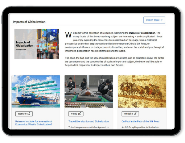 Expertly curated collections of professional development resources on key topics for history educators, including the impacts of global events and issues.