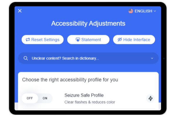 Adjust database visibility and navigation with vision, ADHD, and cognitive disability profile settings in the administrative settings menu.
