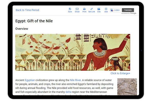 All ABC-CLIO text database content is convertible to text-to-speech, and translation is available in over 25 languages.